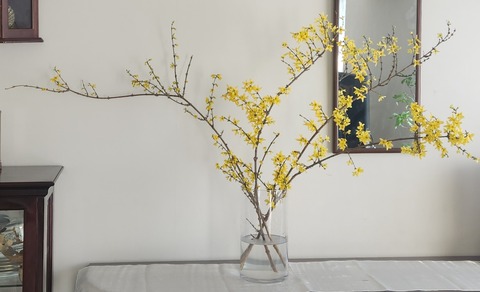 レンギョウの花がとうとう満開になりました。あとは散るだけ日曜日、本来ゴルフの予定が入っていた夫ですが腰痛の為朝からパジャマ姿で家に居ます。私···